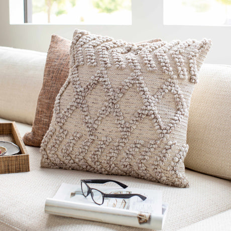 Sagamore Cream Trellis Wool&Cotton Throw Pillow