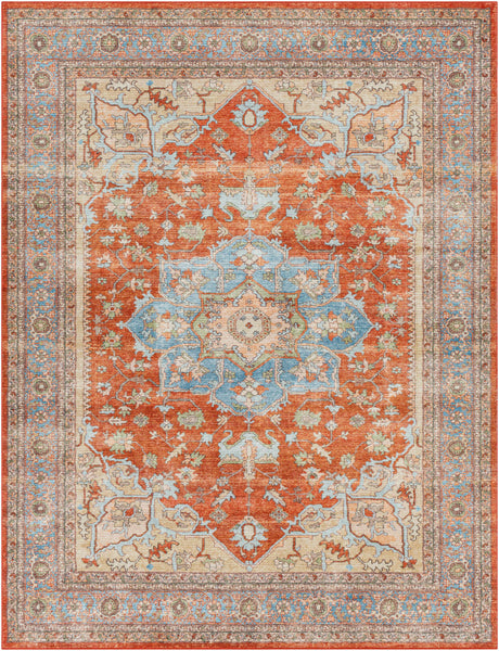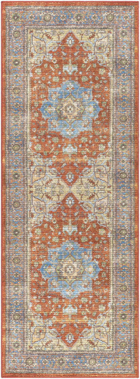 Baltinglass Rust & Blue Washable Area Rug - Clearance