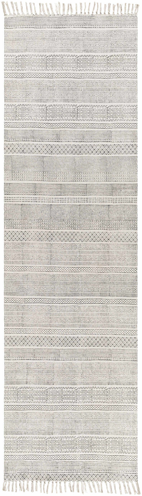 Neal Black/Cream Trellis Cotton Rug with Tassels - Clearance