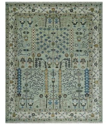 Custom Made Blue, Beige and Green Multi size Hand knotted Traditional Oushak Wool Area Rug