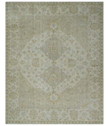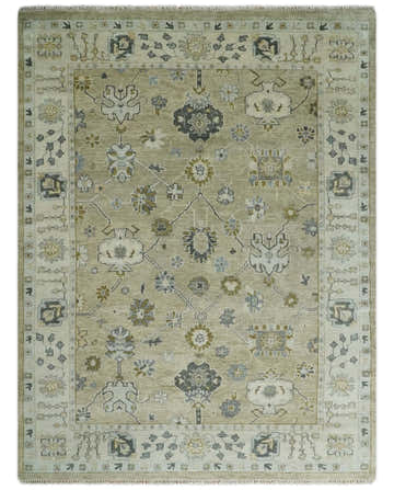 Hand Knotted Antique Oushak Olive and Beige Traditional Oushak Multi Size Wool Area Rug