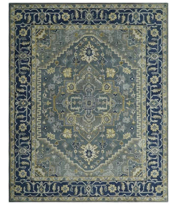 Custom Made Antique Style Gray, Blue and Beige Hand Tufted Traditional wool Area Rug