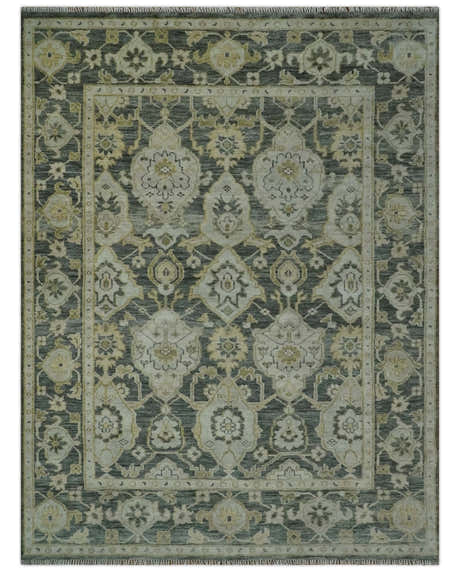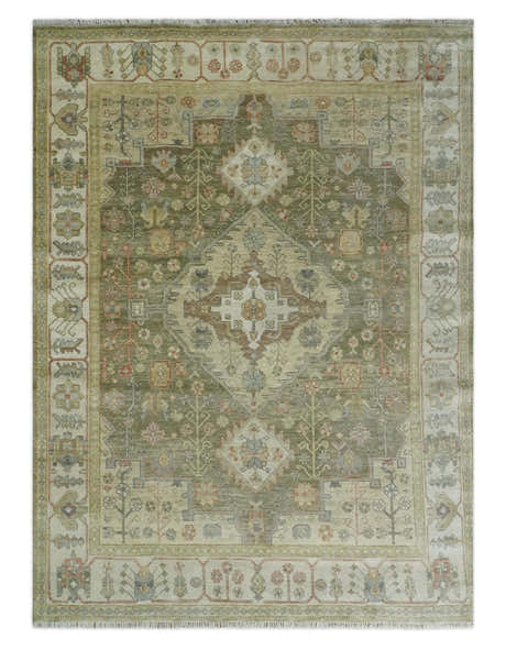 Antique style Gray, Ivory and Olive Hand knotted Traditional Oushak wool Area Rug