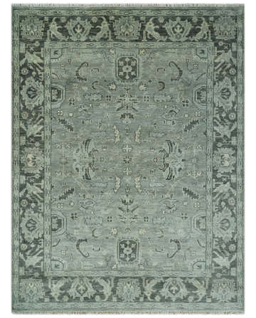 Hand Knotted Charcoal and Ivory Traditional Persian Oushak Wool Rug