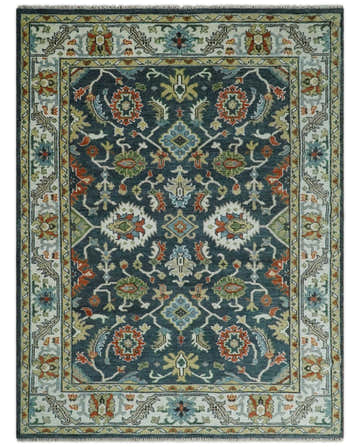 Teal and Ivory Traditional Hand Knotted Oriental Oushak Custom Made Wool Area Rug