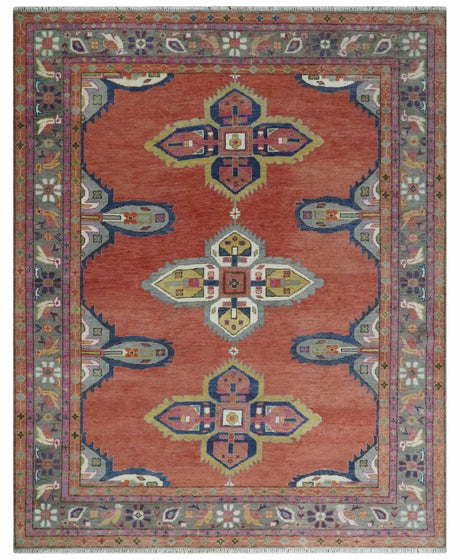 Custom Made Traditional Oushak Rust, Beige and Teal Hand knotted wool Area Rug