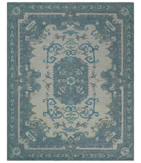 Blue, Silver and Beige Hand knotted Traditional Oushak Multi Size Wool Area Rug