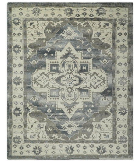 Antique style Gray and Silver Hand Knotted Multi Size Oushak Wool Area Rug
