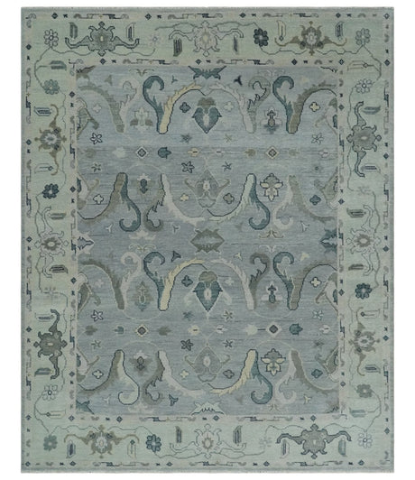 Custom made Antique style Blue and Silver Hand Knotted Oushak Wool Area Rug