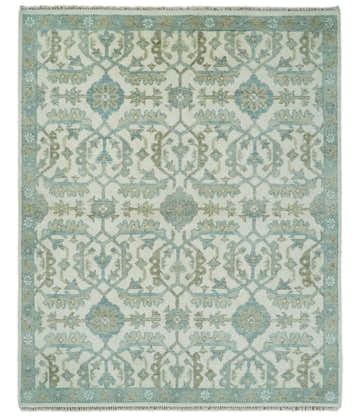 Hand Knotted Oriental Oushak Teal, Ivory and Beige Custom Made Wool Area Rug