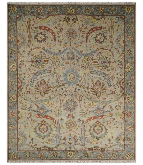 Rust, Ivory and Blue Hand Knotted Oriental Oushak Custom Made wool Area Rug