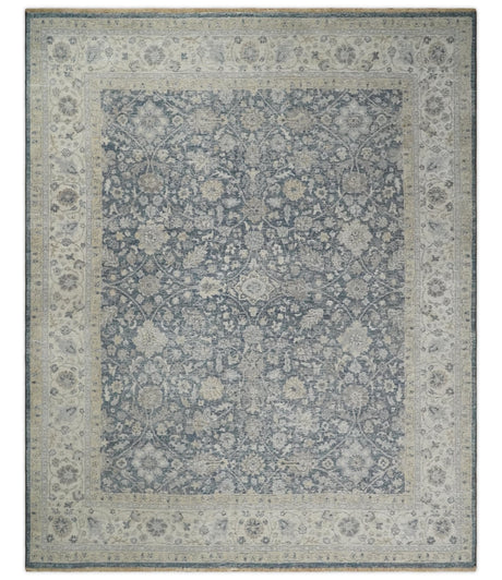 Custom Made Tree of life Hand Knotted Antique Ivory, Blue and Gray Traditional Oushak Wool area Rug