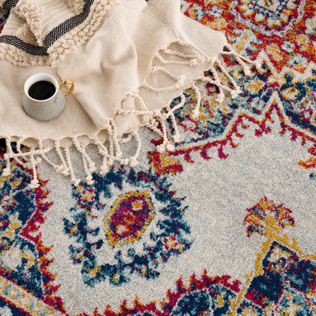 Divya Cream & Silver Blue Area Rug - Clearance