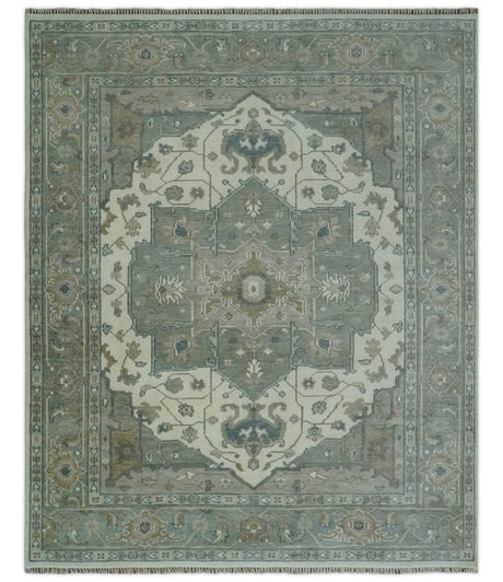 Antique Style Green, Ivory and Beige Hand knotted Heriz Serapi Multi Size wool Area Rug