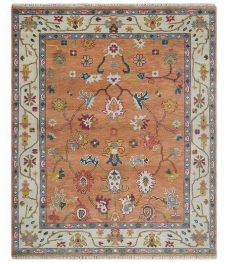 Peach and Ivory Hand knotted Oushak Custom Made wool Area Rug