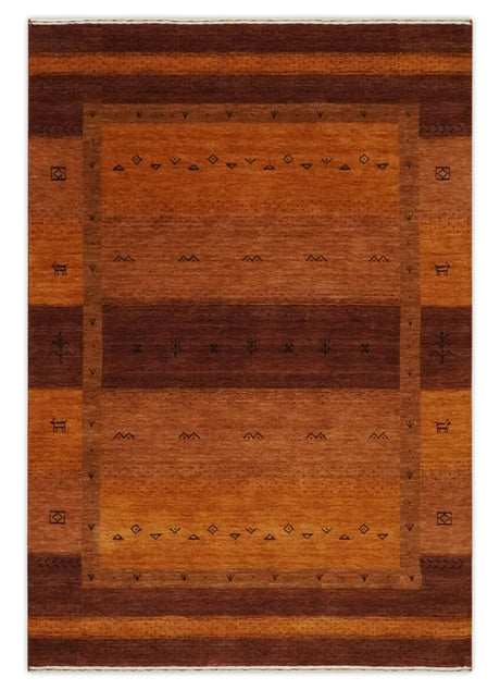 Custom Made geometrical Stripes Design Rust and Brown Hand loom wool Area Rug