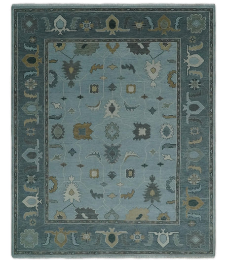 Bluish Gray and Aqua Hand knotted Oriental Oushak Custom Made wool Area Rug