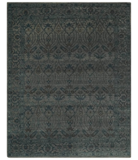 Tree of life Green and Silver Hand Knotted Traditional Floral Custom Made wool rug