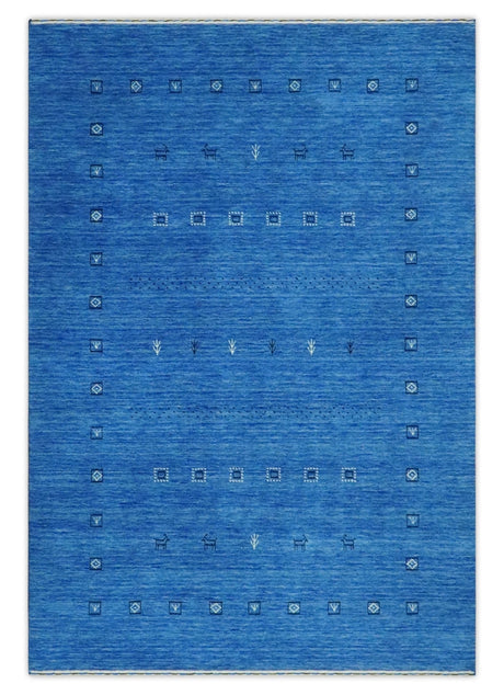 Ivory, Olive, Blue and Charcoal Handloom Tribal Gabbeh Multi Size wool Area Rug