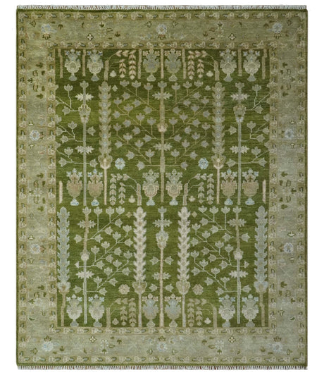Traditional Floral Olive and Ivory Hand Knotted Oriental Oushak Custom Made wool area rug