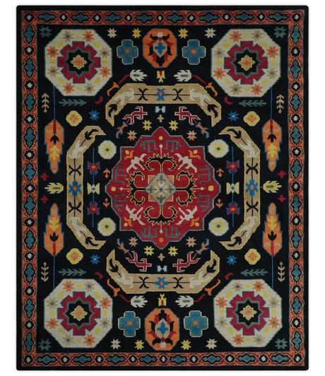 Custom Made Colorful Black, Maroon and Beige Traditional Mamluk Design wool Rug