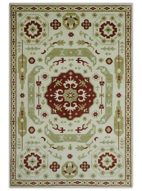 Hand Knotted Ivory, Teal and Beige Traditional Oriental Oushak Multi Size wool rug