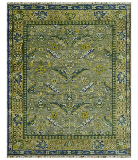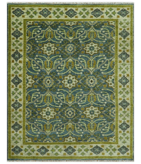 Custom Made Traditional Floral Green and Blue Hand Knotted wool area rug
