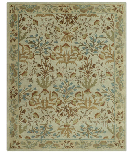 Custom Made Beige And Brown Traditional Floral Design Hand Tufted Wool Area Rug