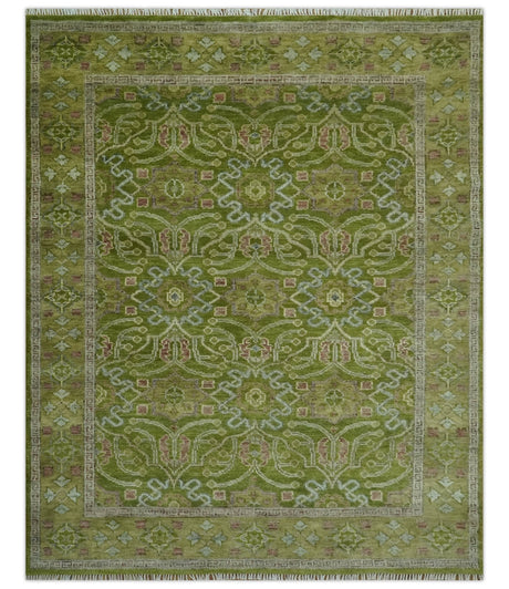Antique look vintage style Green, Beige and Brown traditional Hand Knotted Multi Size wool rug