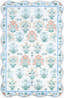 Powbl Blue Floralnature Machine Woven Polyester Washable Area Rug