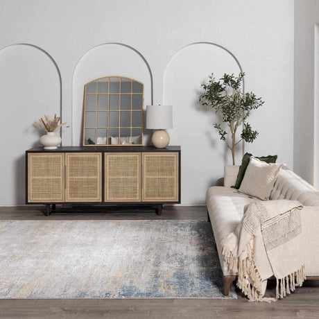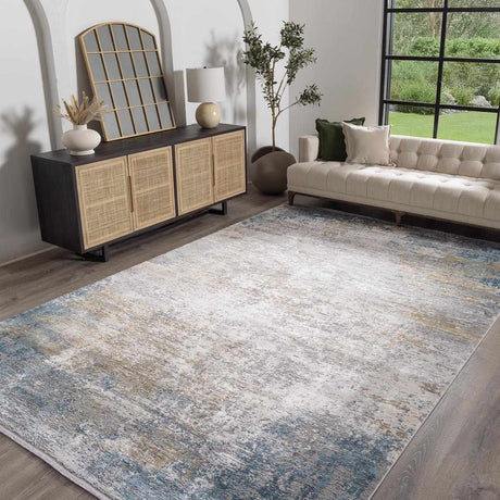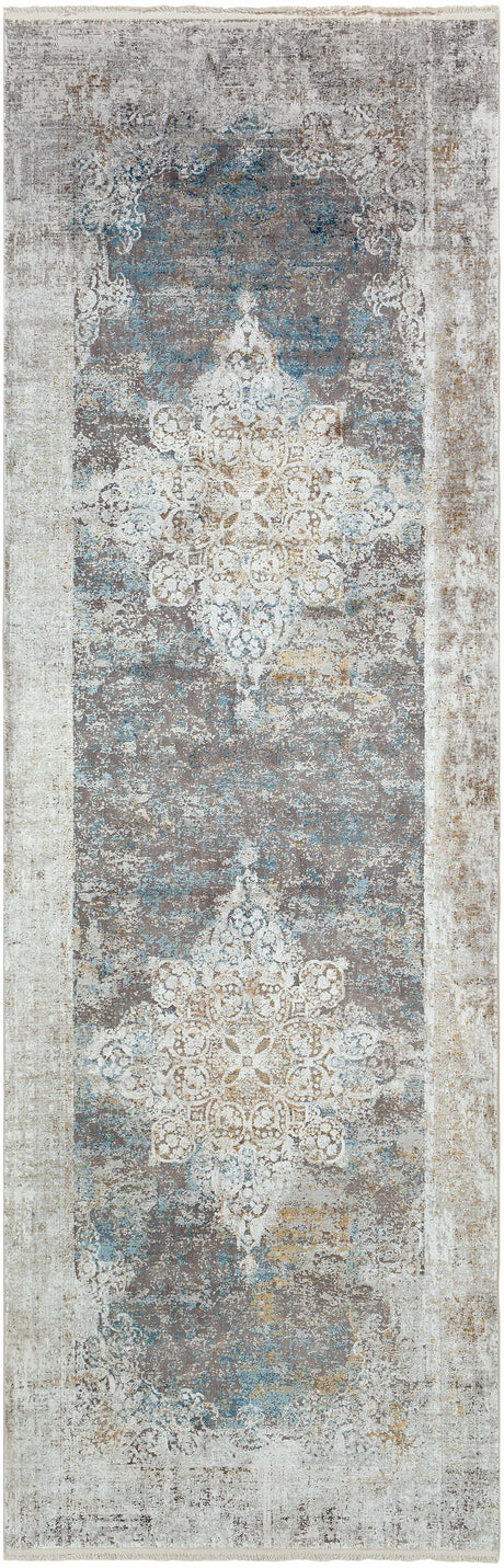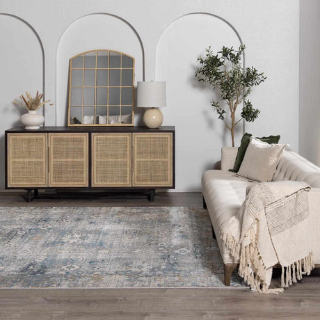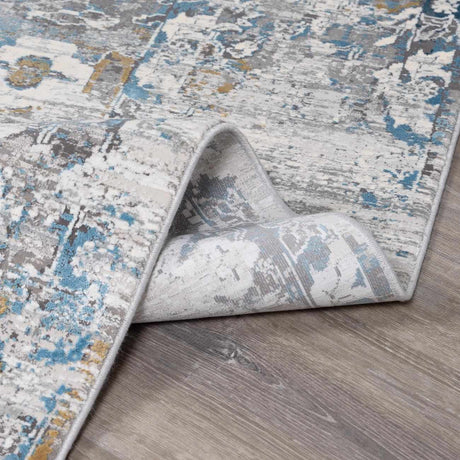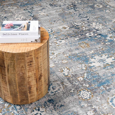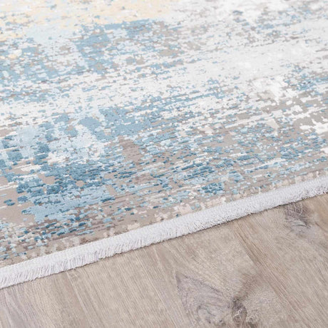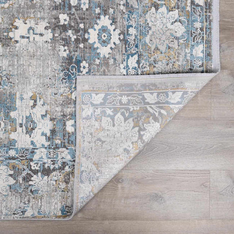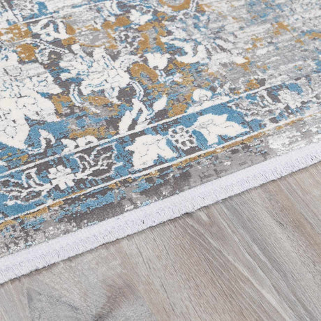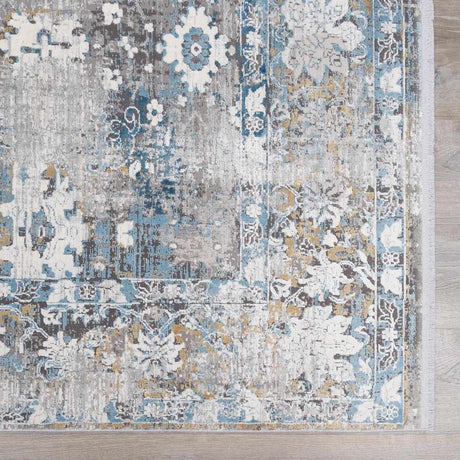 Calion Distressed Blue Luxury Fringed Faux Silk Rug
