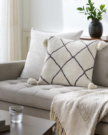 Aqil Beige Corduroy Patchwork Accent Pillow