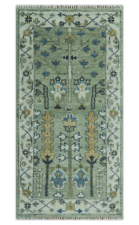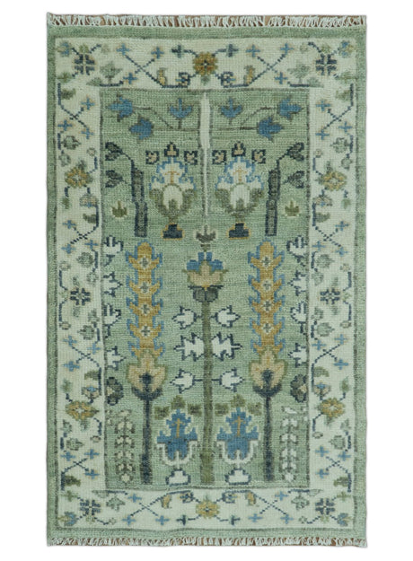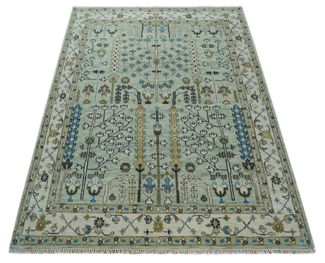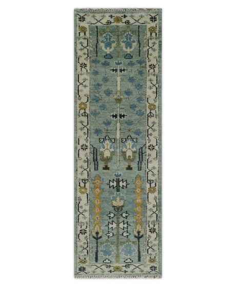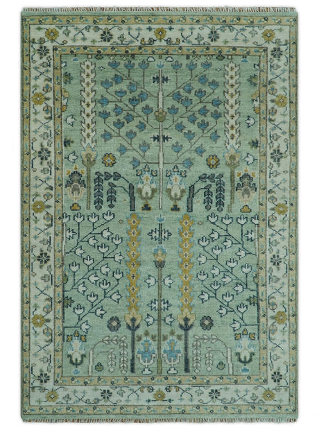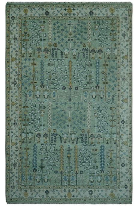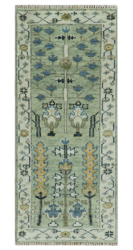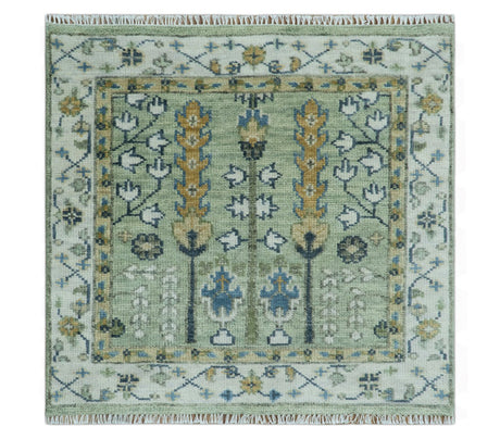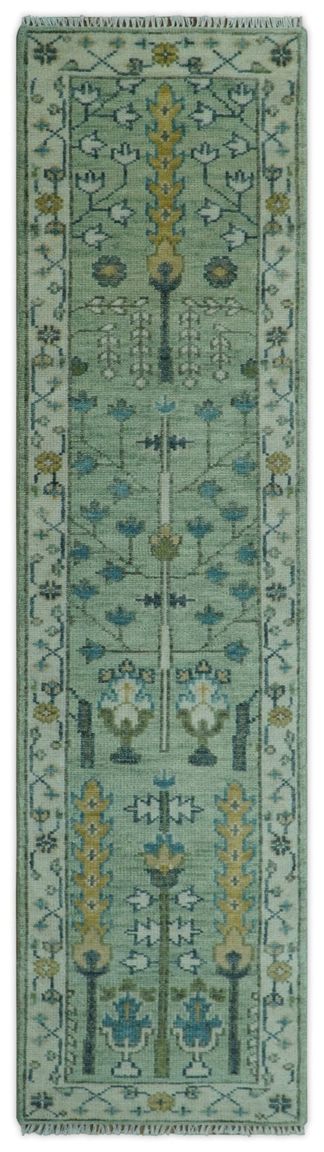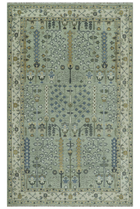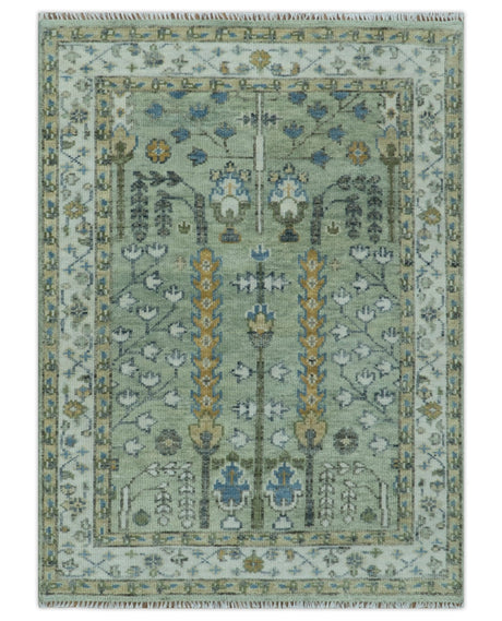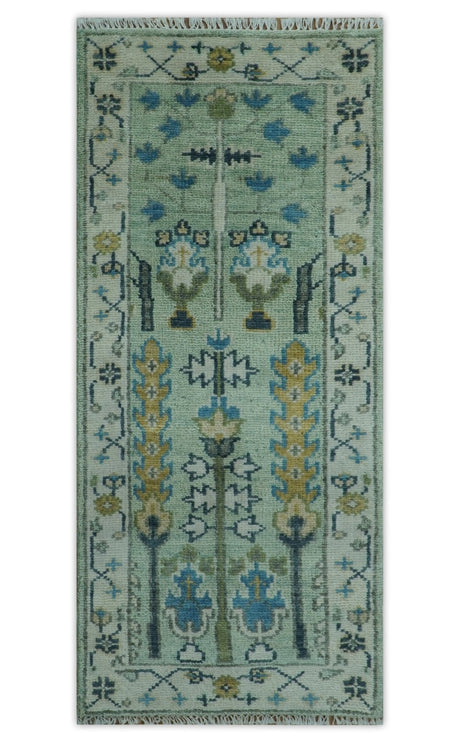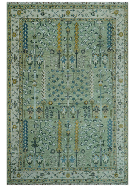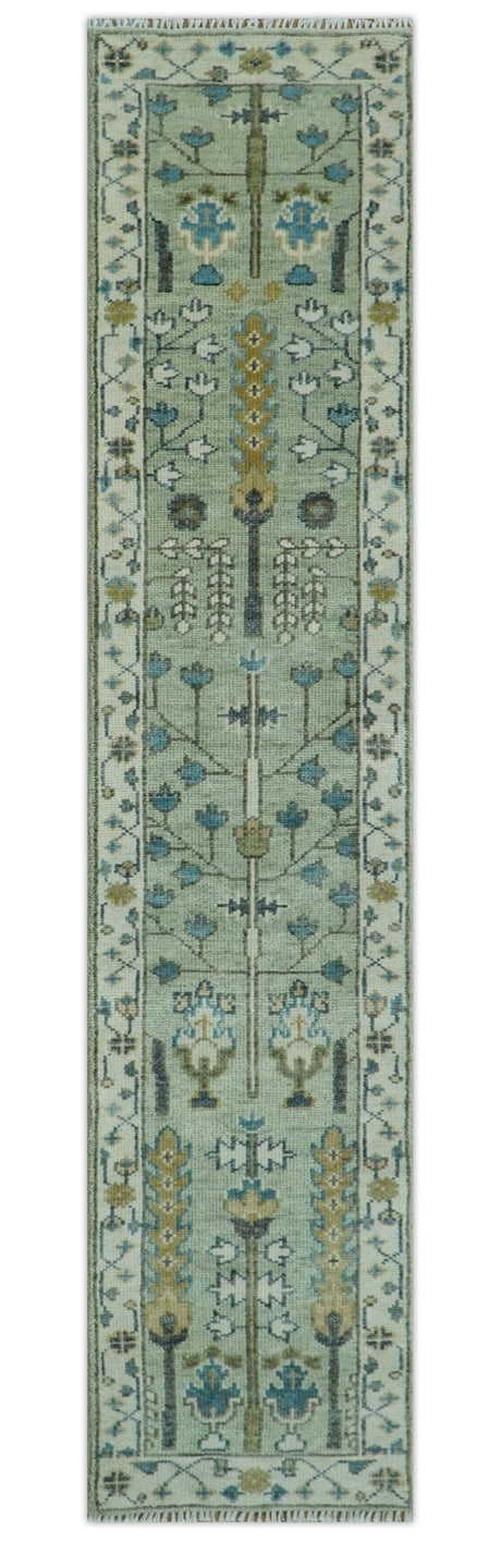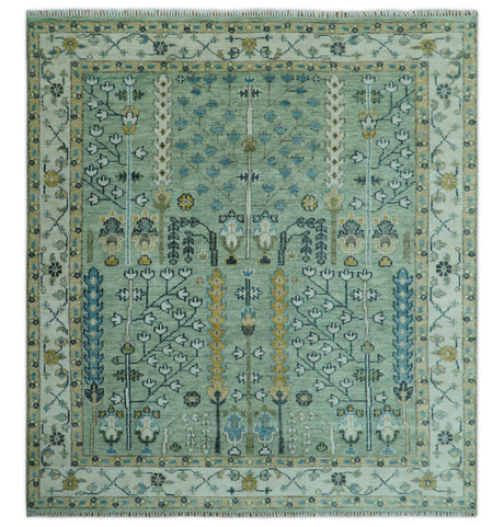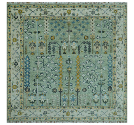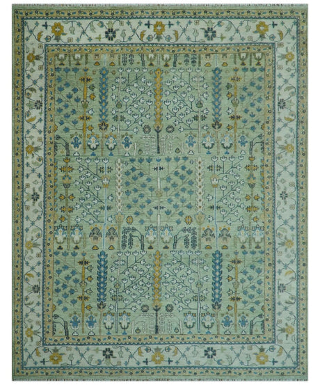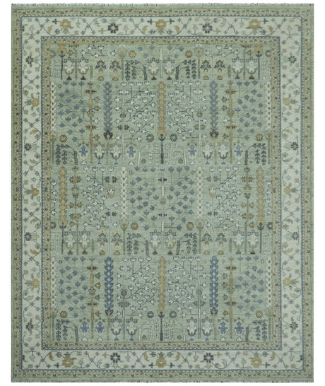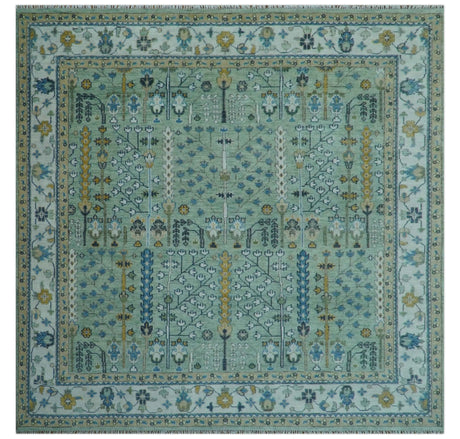 Custom Made Blue, Beige and Green Multi size Hand knotted Traditional Oushak Wool Area Rug