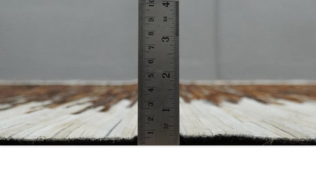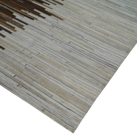 Modern Stripes Cowhide Leather Striped Tan Brown and Ivory Leather Multi Size Area Rug