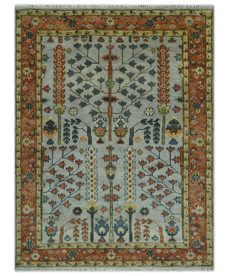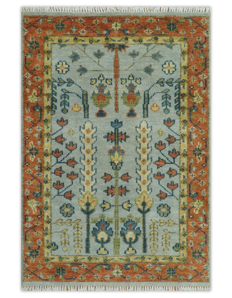 Hand Knotted Rust and Blue Traditional Turkish Vintage Multi Size Wool Rug