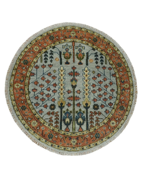 Custom Made Antique Style Gray, Blue and Beige Hand Tufted Traditional wool Area Rug