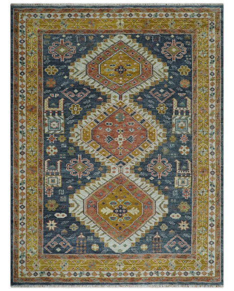 Rust, Gold and Gray Traditional Hand knotted Custom Made wool Area Rug