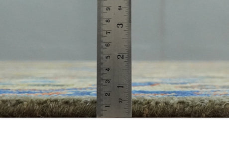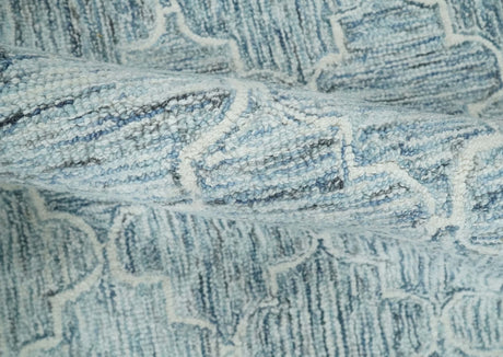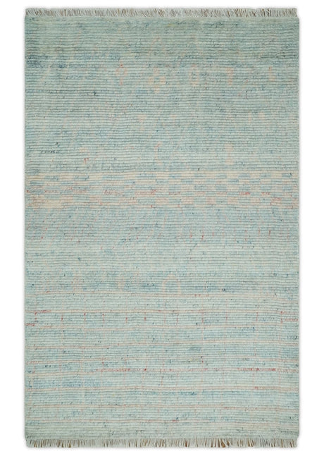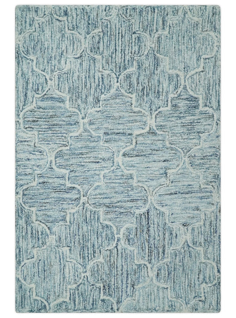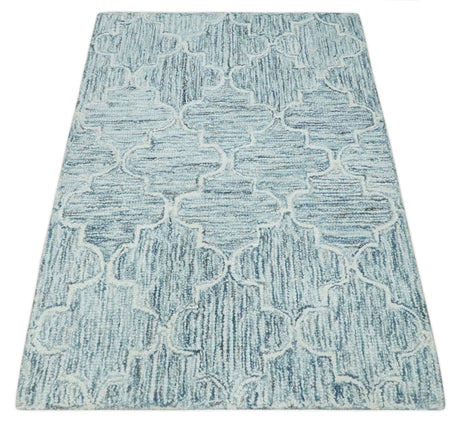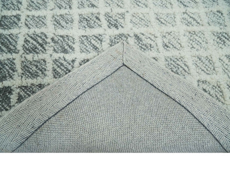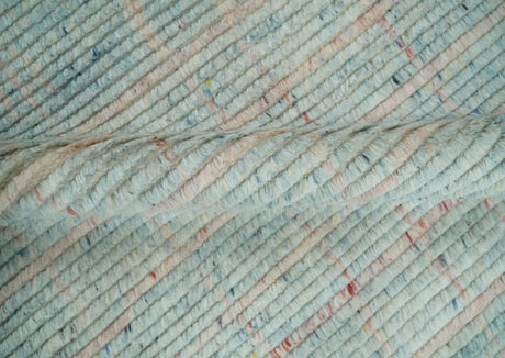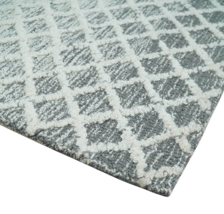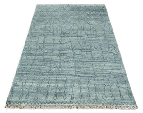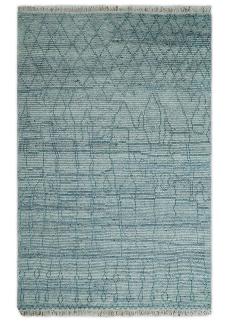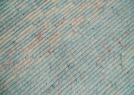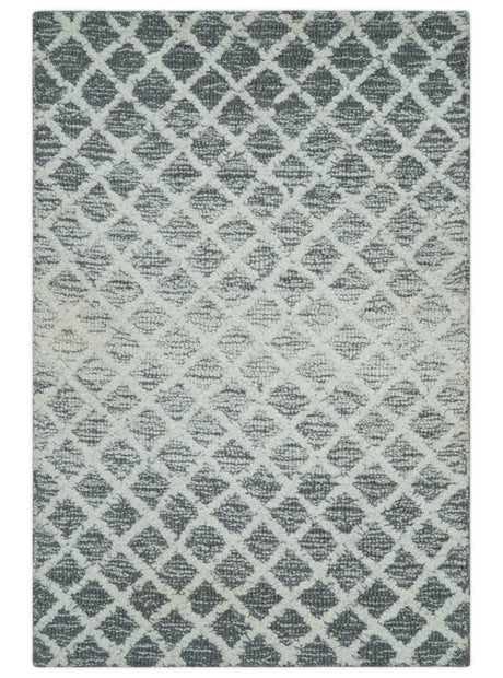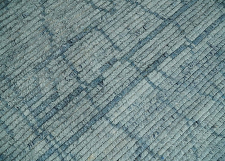Hand Knotted Silver and Blue Modern Trellis Moroccan Rug Made with Blended Wool Multi Size Rug