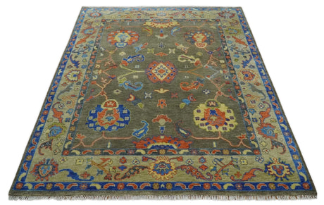 Olive and Blue Vibrant Colorful Traditional Oushak Multi Size wool Area Rug