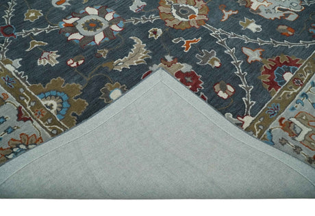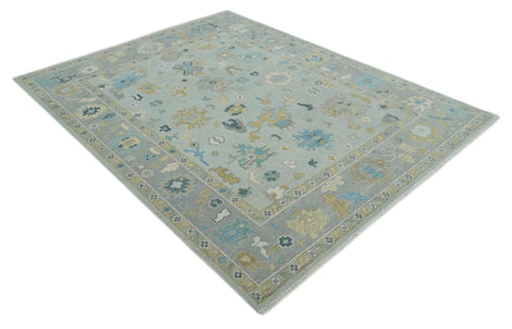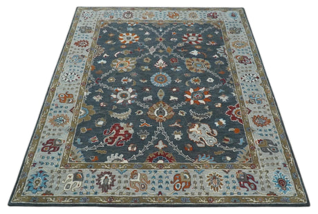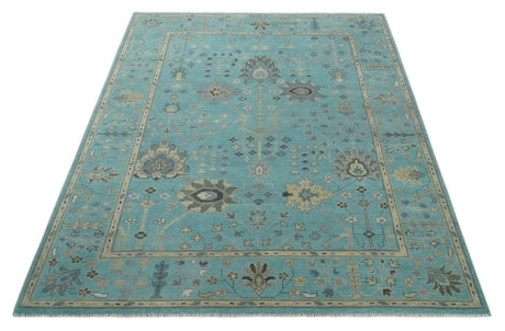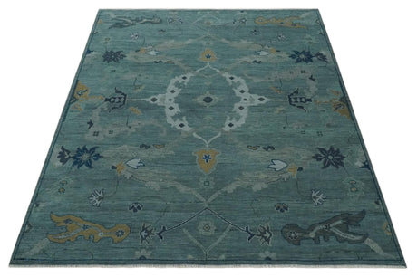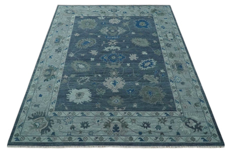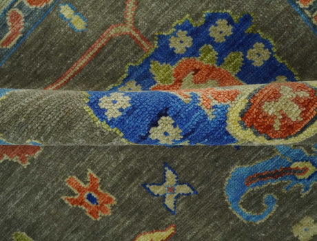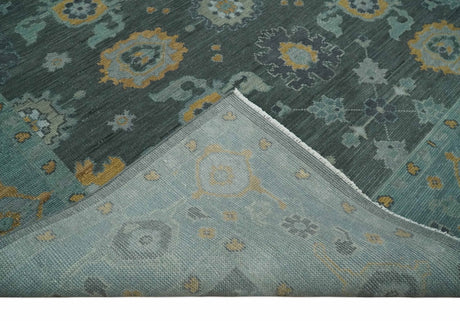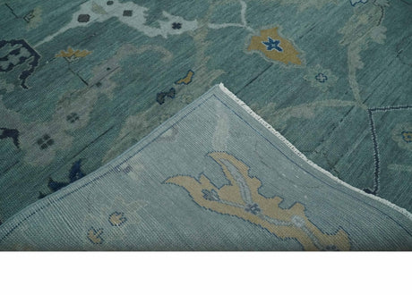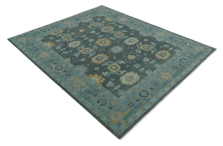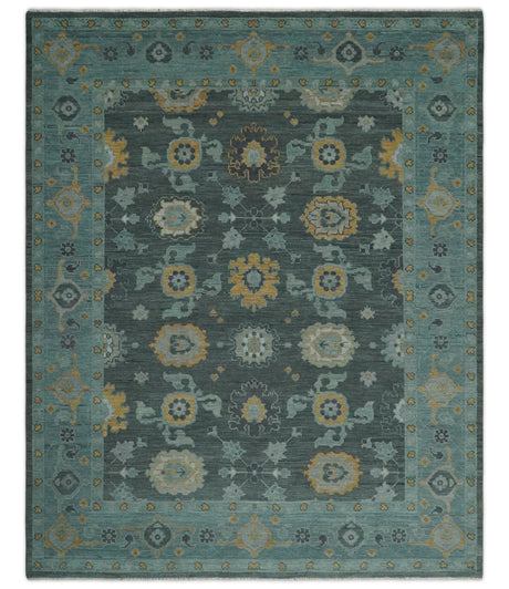 Hand Knotted Charcoal and Aqua Traditional Multi Size Oushak Wool Area Rug