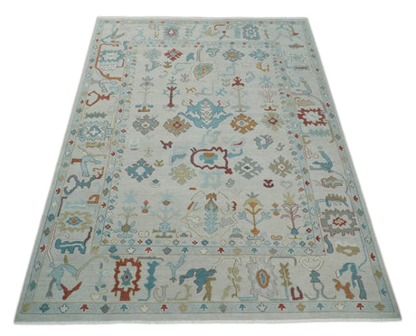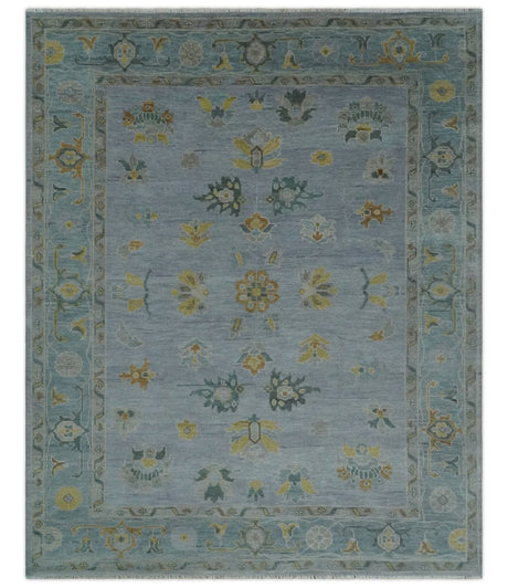 Antique Silver and Gold Vibrant Colorful Hand knotted Oushak wool Area Rug