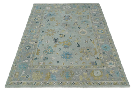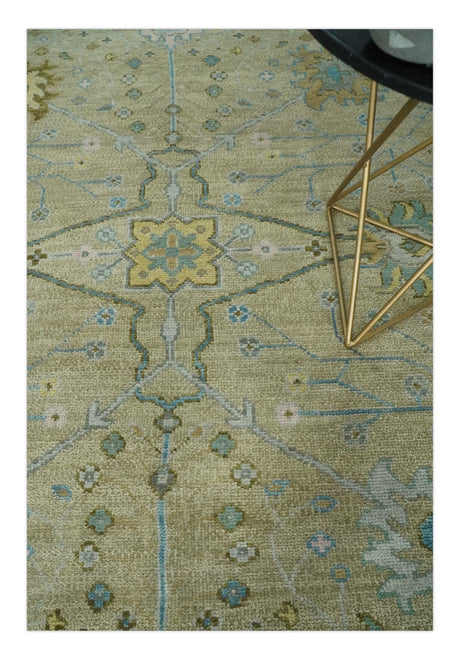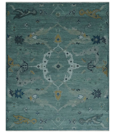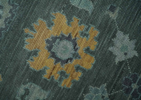 Hand Knotted Traditional Oriental Oushak Antique Style Green Wool Area Rug