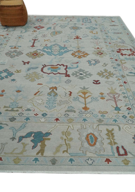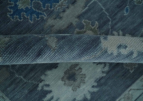 Multi Size Charcoal, Aqua and Silver Hand Knotted Oushak Wool Area Rug