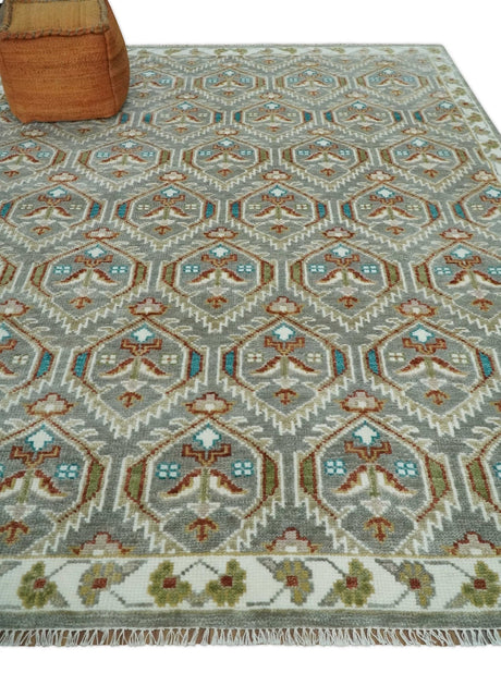 Hand Knotted Gray and Silver Traditional Multi Size Oushak Wool Rug