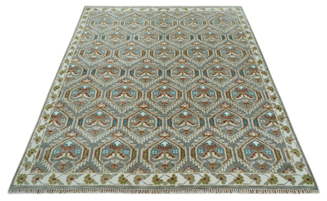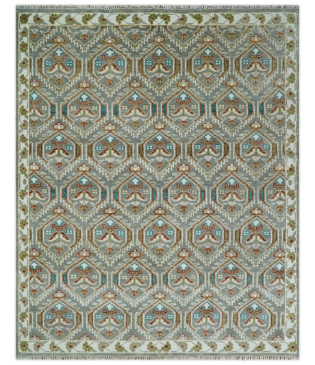 Antique look Traditional Hand Knotted Silver, Ivory and Rust Multi Size Area Rug