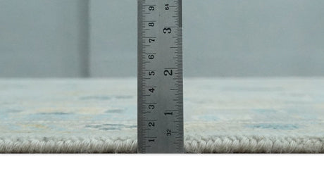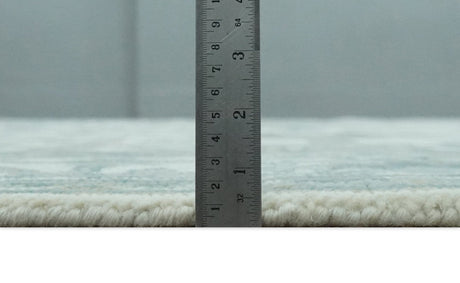 Contemporary Ivory and Blue Hand Knotted Multi Size Rug