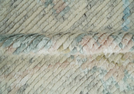 Ivory, Purple and Blue Abstract Solid Hand Tufted Natural Wool Rug