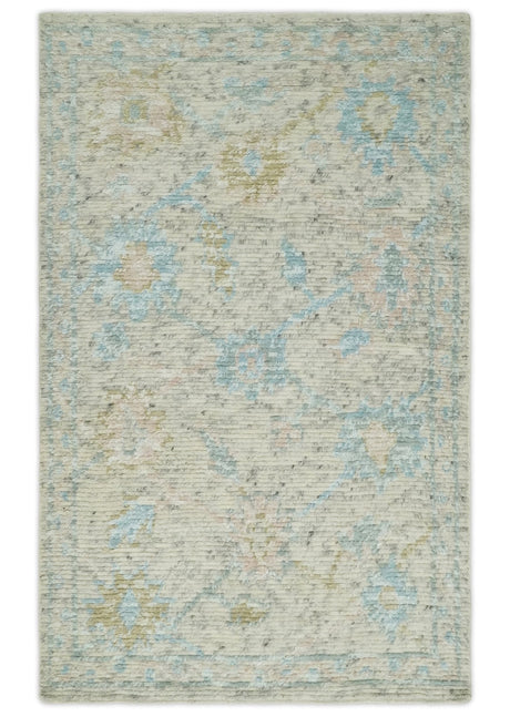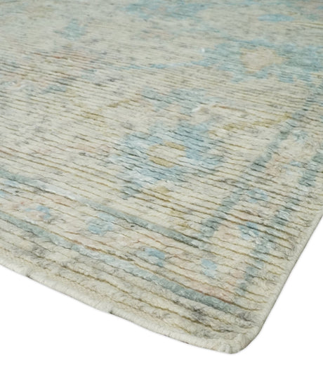 Hand Knotted Beige and Ivory Floral Traditional Traditional Oushak Multi Size Wool Area Rug