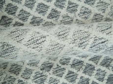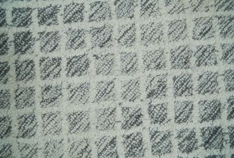 Modern Geometric Ivory and Charcoal Abstract Hand Tufted Natural Wool Multi Size Area Rug