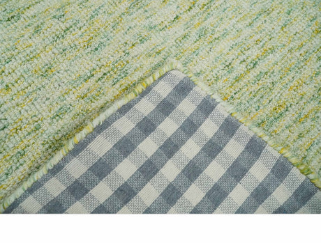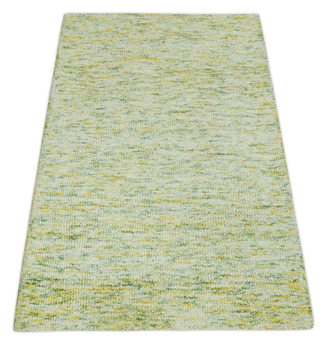 Custom Made Solid Moss Green Ivory and Gold Abstract Hand Tufted Natural Wool Area Rug